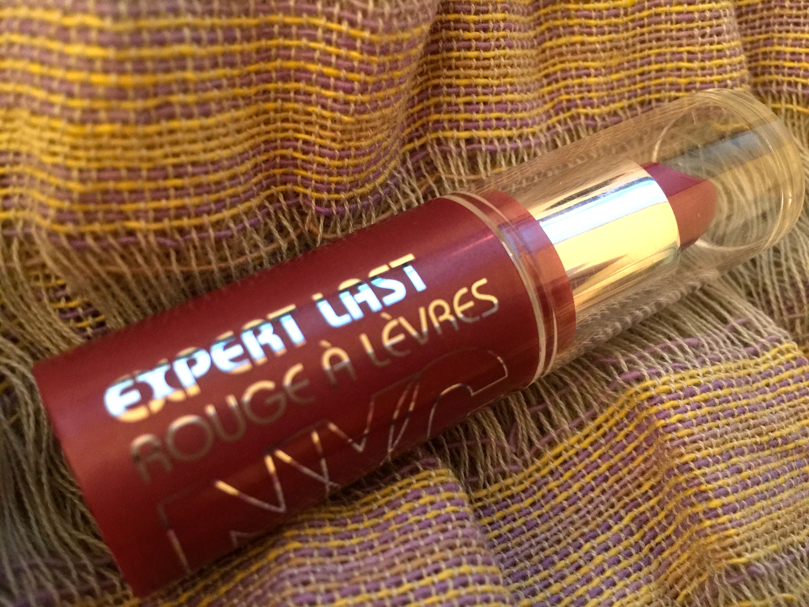 Now, I haven’t worn NYC products since I have been in middle school…why? Because I personally find most NYC products very drugstore, with light pigments && chemically smells. HOWEVER, this lipstick was not like that at all! The color is a very pretty light berry, and it stays on your lips like the label promises!